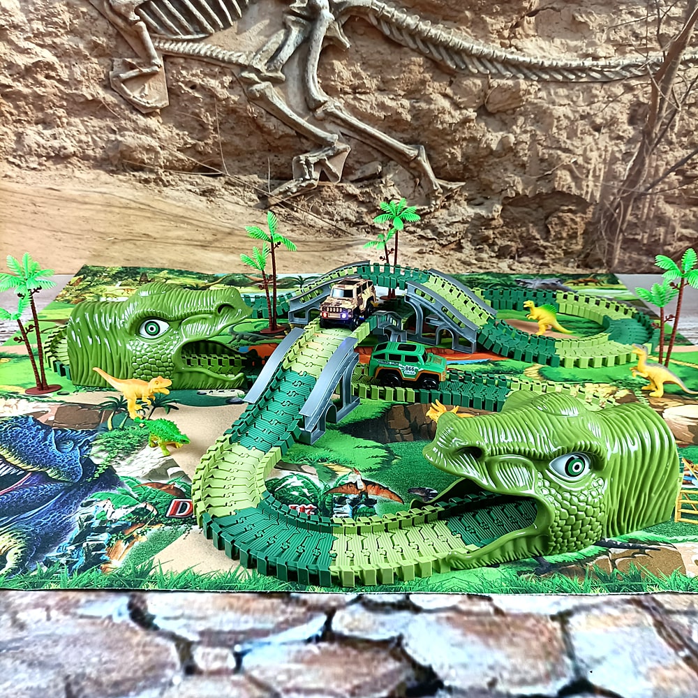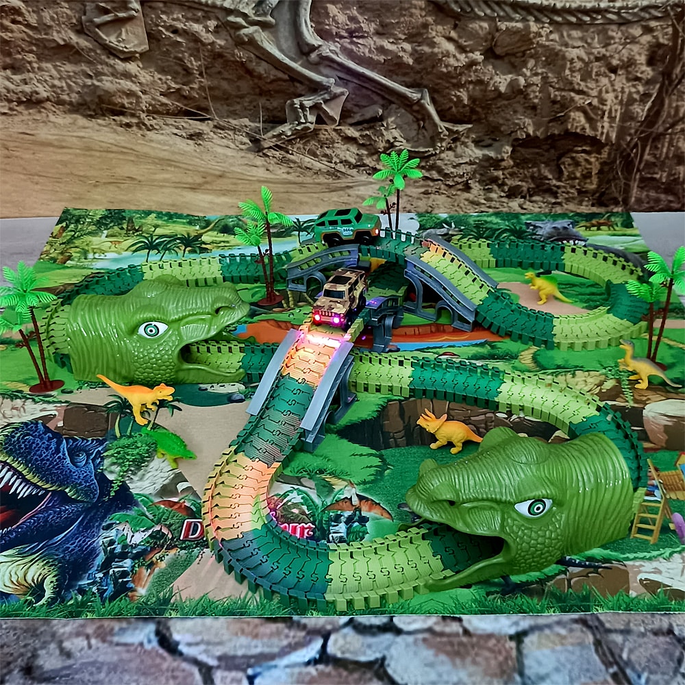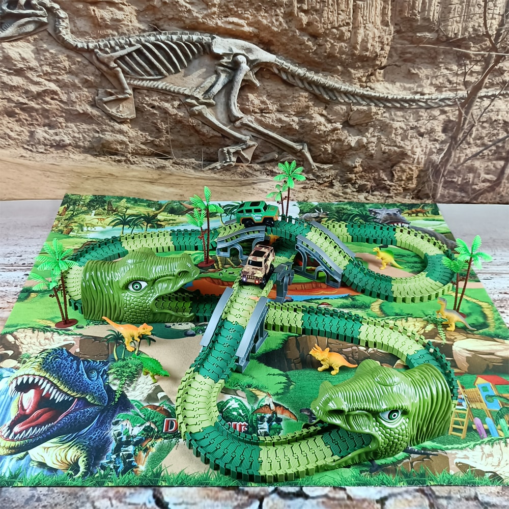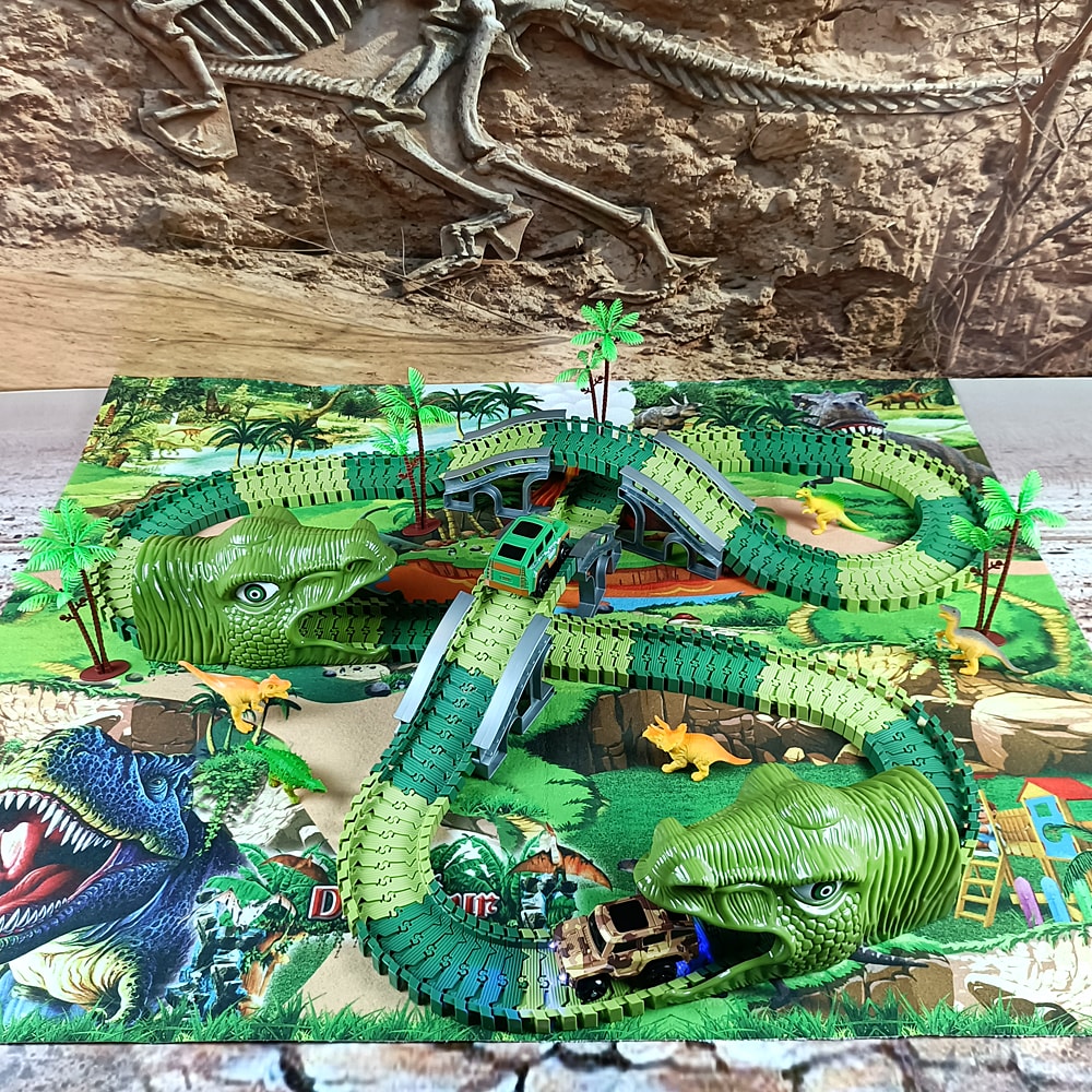- HOURS OF CREATIVE FUN: There is no wrong way to build this dinosaur track! Your child can create endless combinations by twisting, turning, and flexing the tracks into different shapes. Easy to assemble tracks mean hours of independent and imaginative play for your child, and extra time for you!