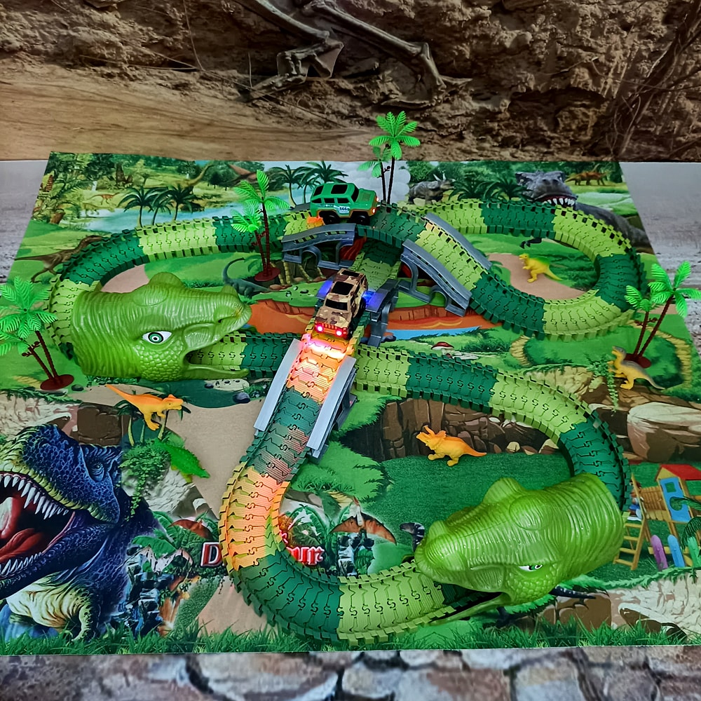Let your child experience the world of dinosaurs with the all-new Dino Kingdom™ Track Set with Playmat.