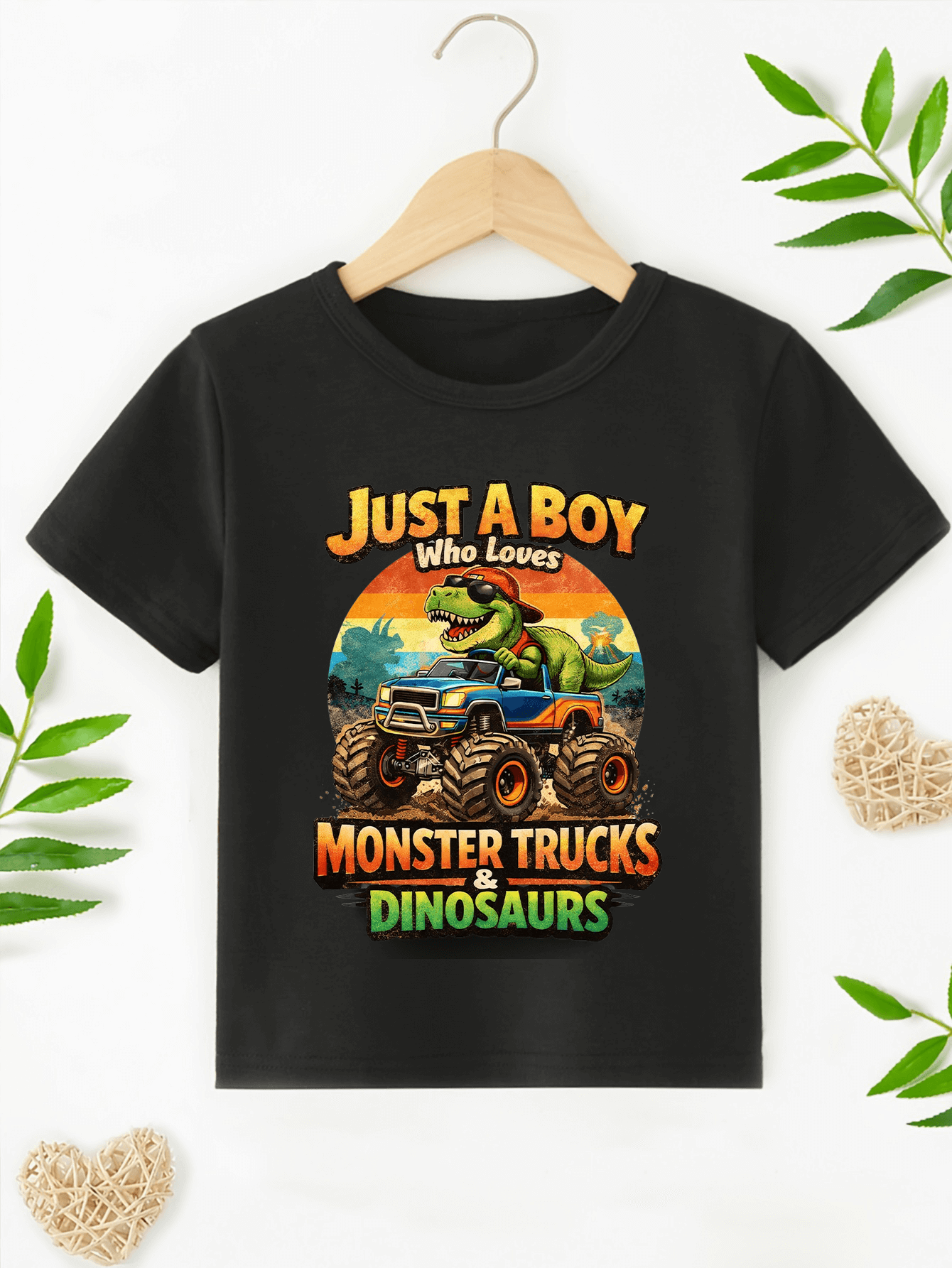 Just a Boy Who Loves Monster Trucks & Dinosaurs T-Shirt